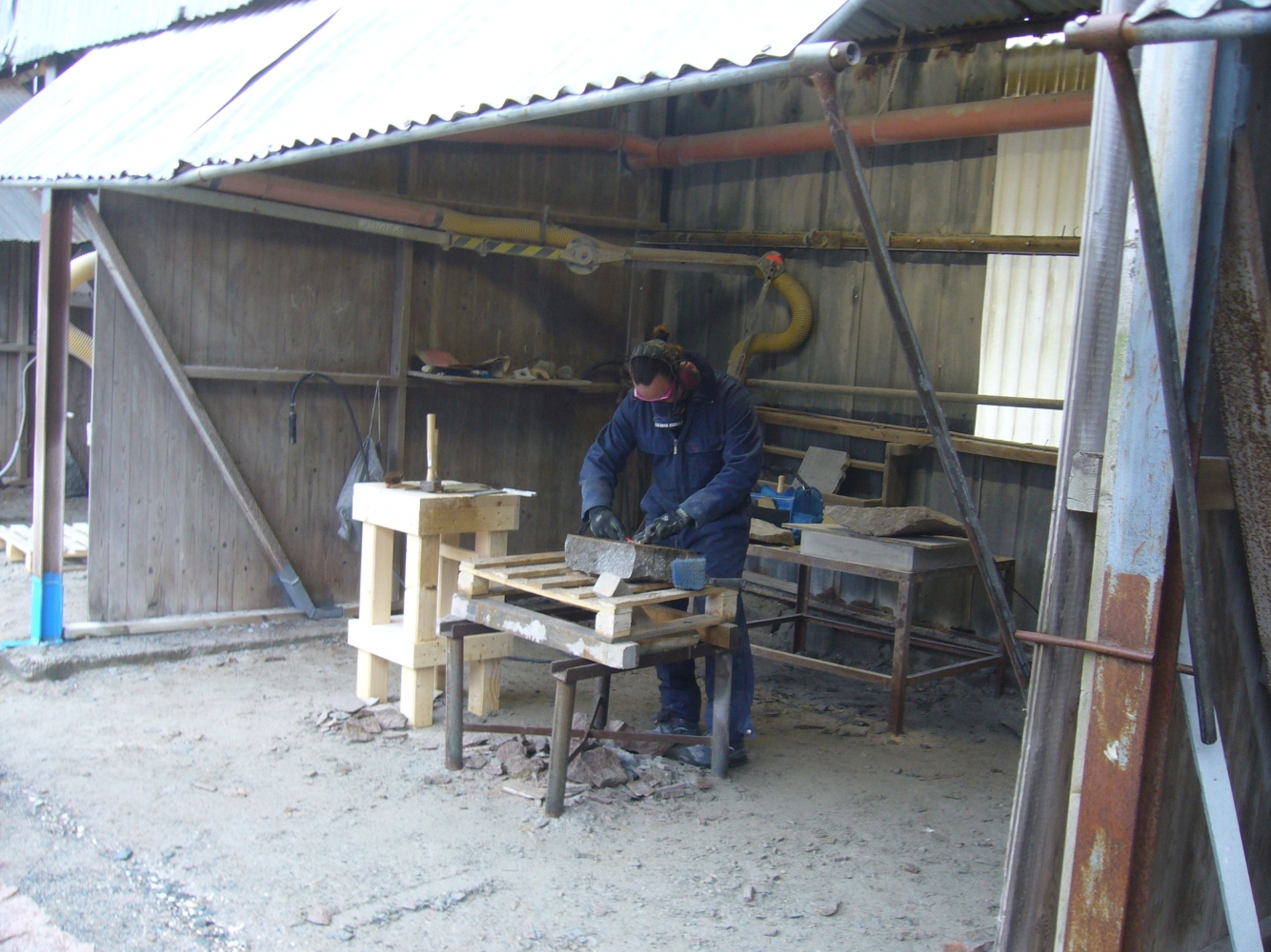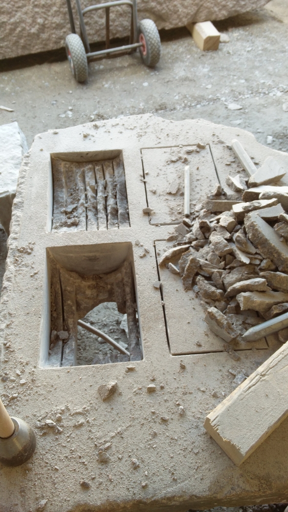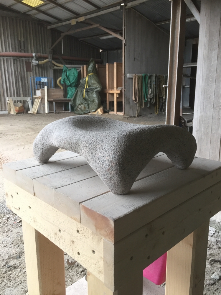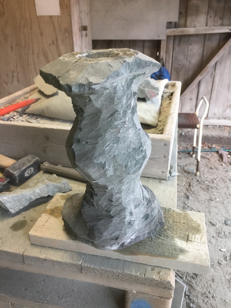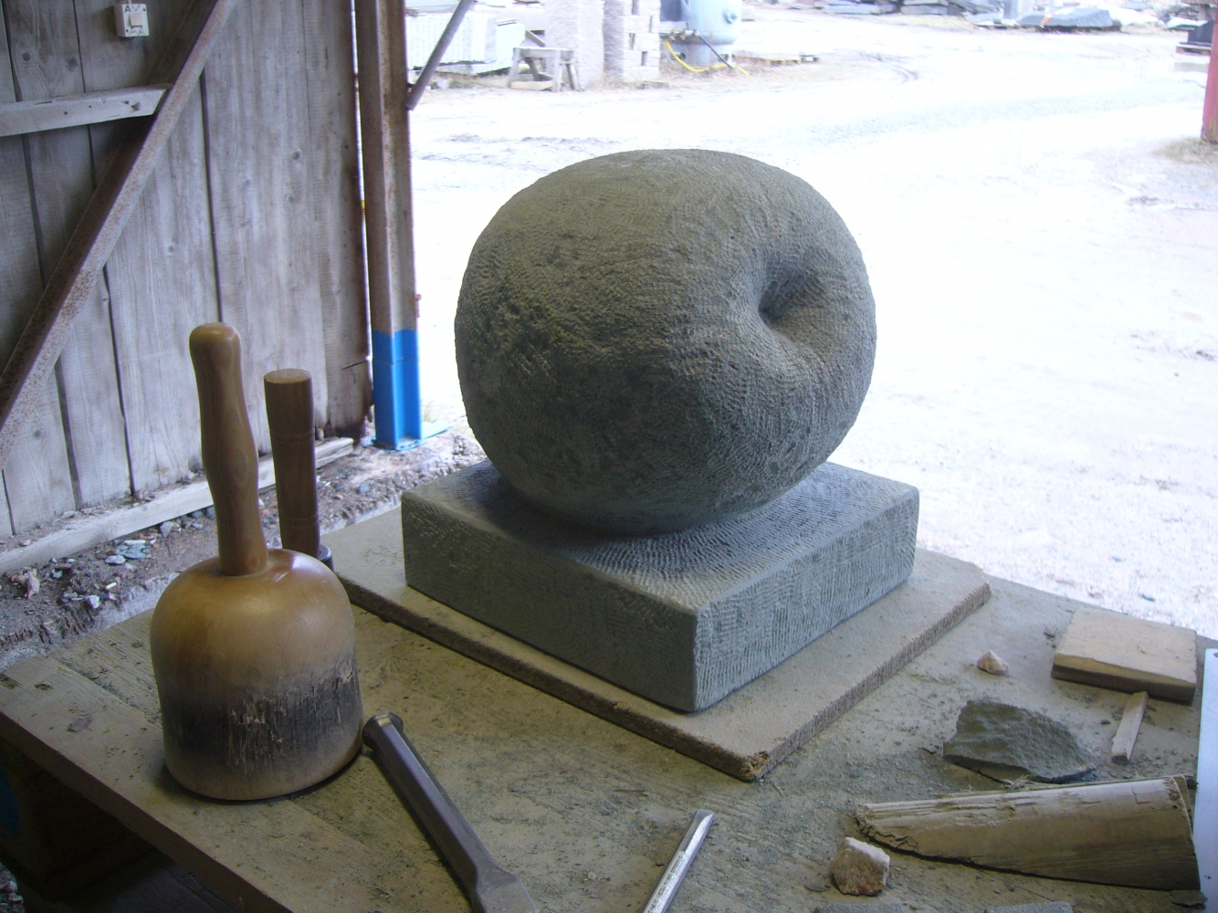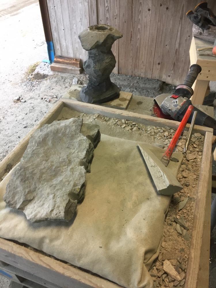 Det är värt mycket att jobba utomhus. Man slipper damm, framförallt. Här visar deltagare av Stenhantverks utbildning några exempel av deras arbete i kalksten och granit.