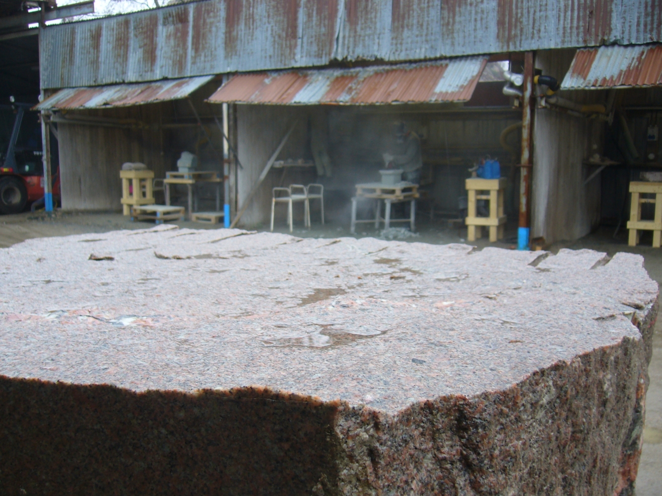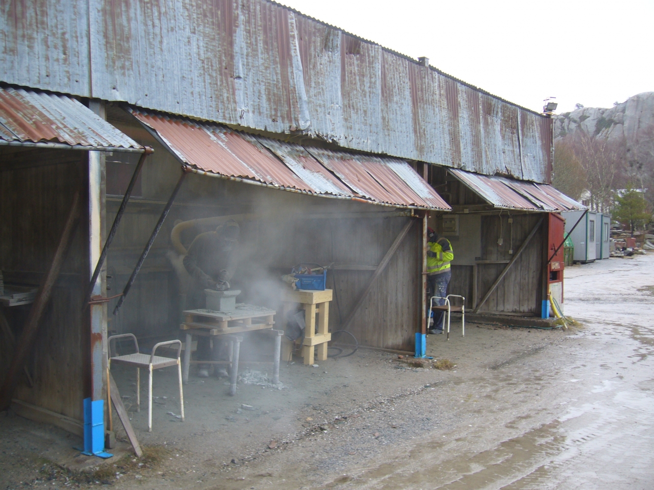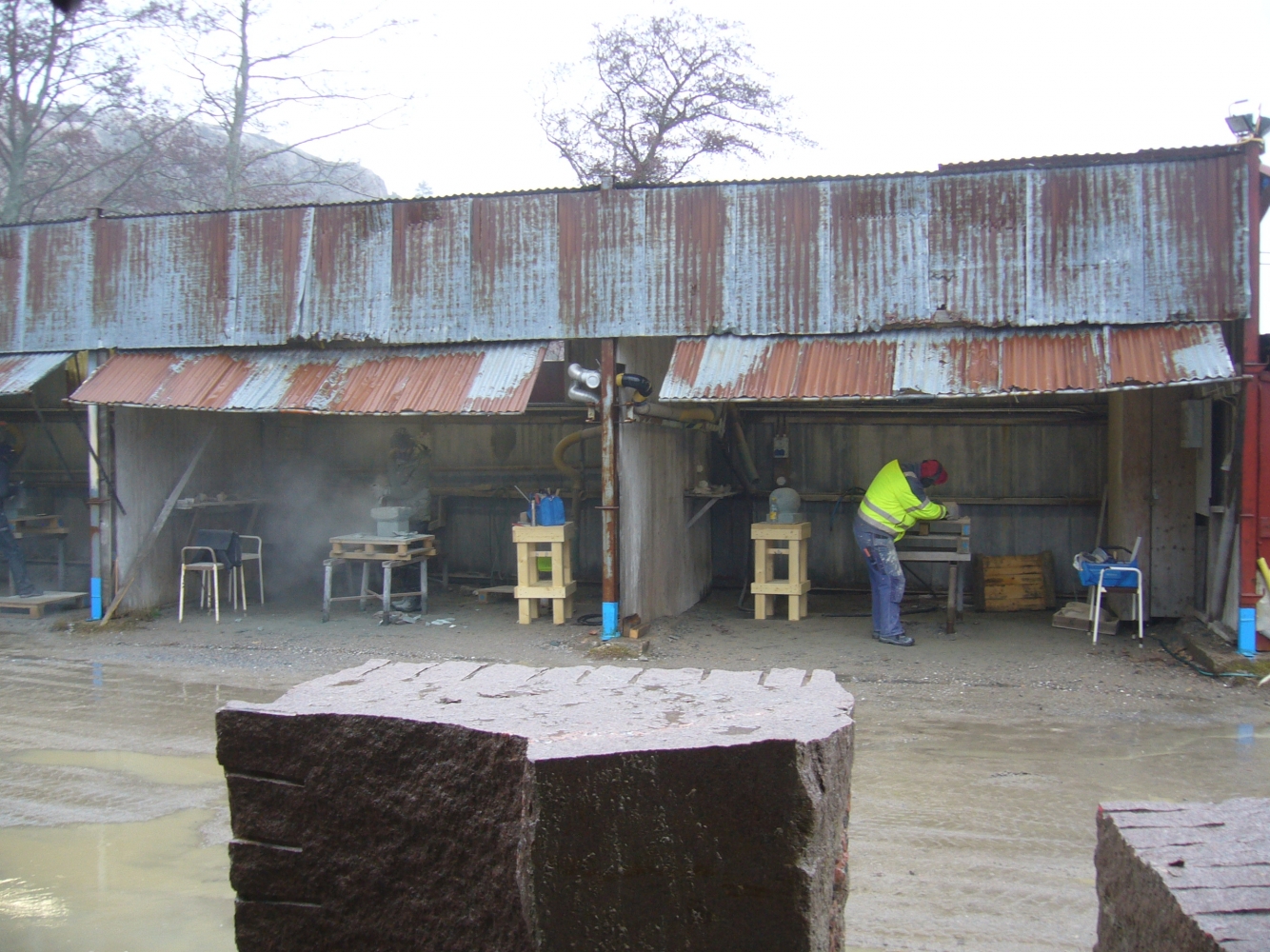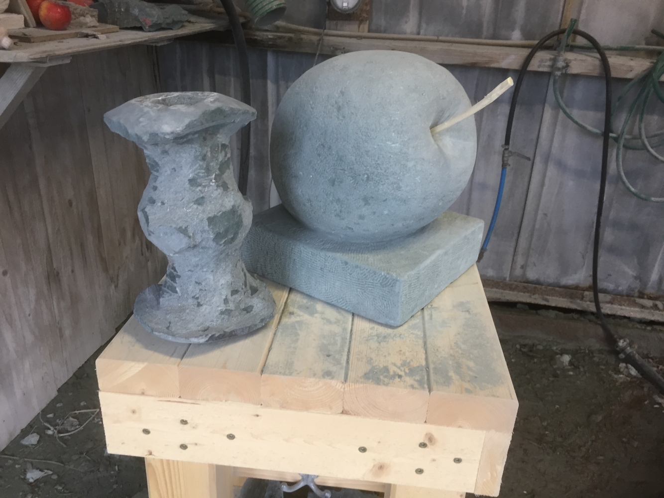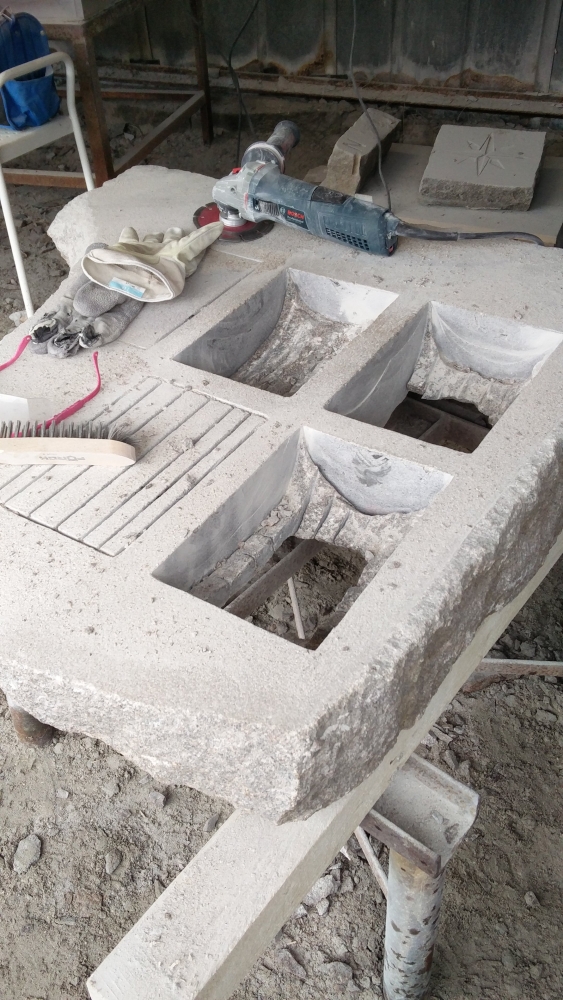 Det är värt mycket att jobba utomhus. Man slipper damm, framförallt. Här visar deltagare av Stenhantverks utbildning några exempel av deras arbete i kalksten och granit.