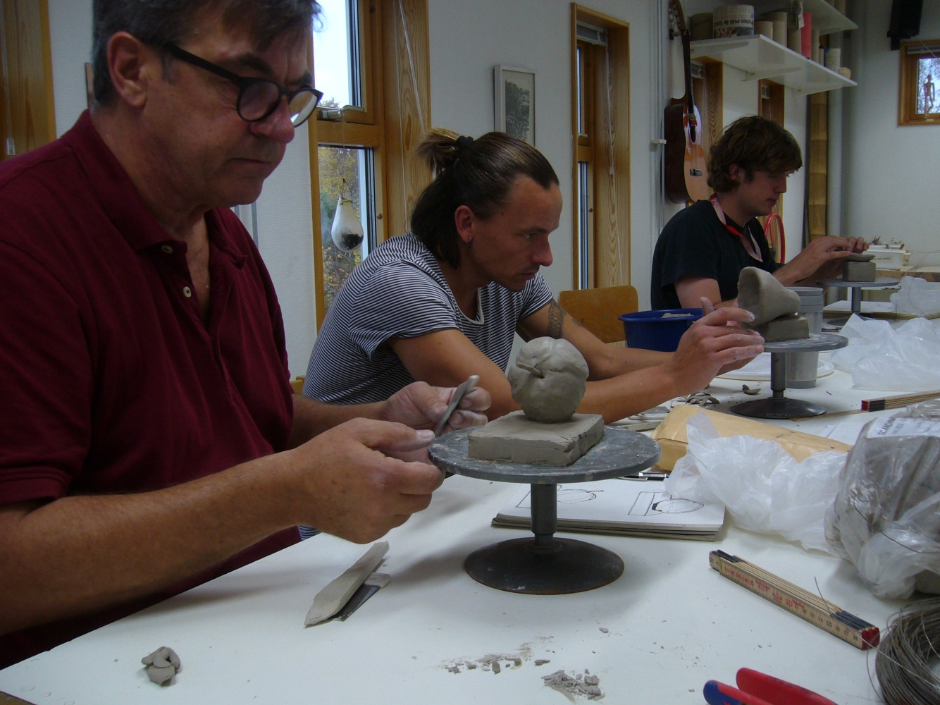 En viktig del av utbildningen är form övningar. Vi väljer lera för en snabb resultat, eller mjuka stensorter, till exempel kalksten från Gotland.