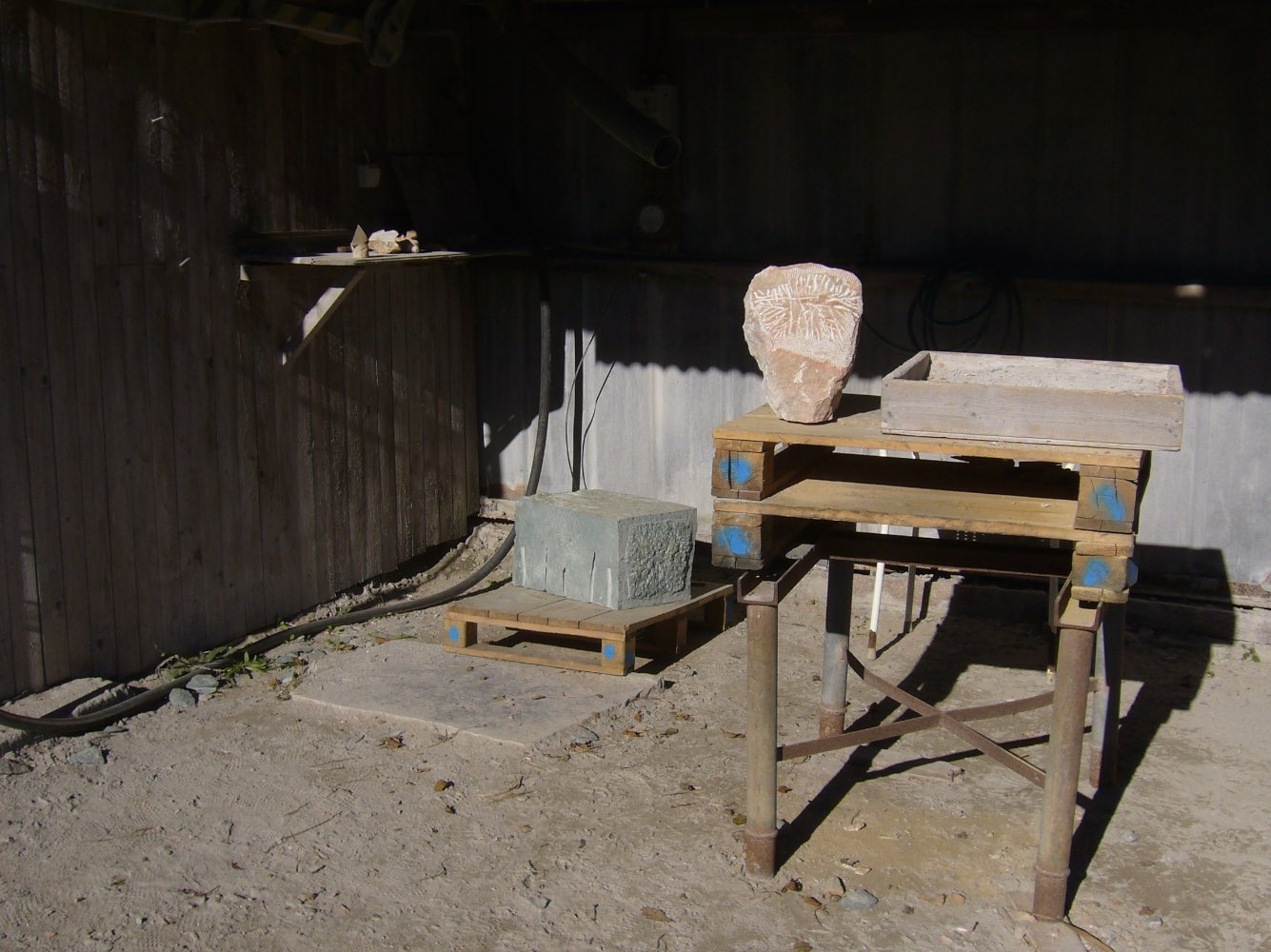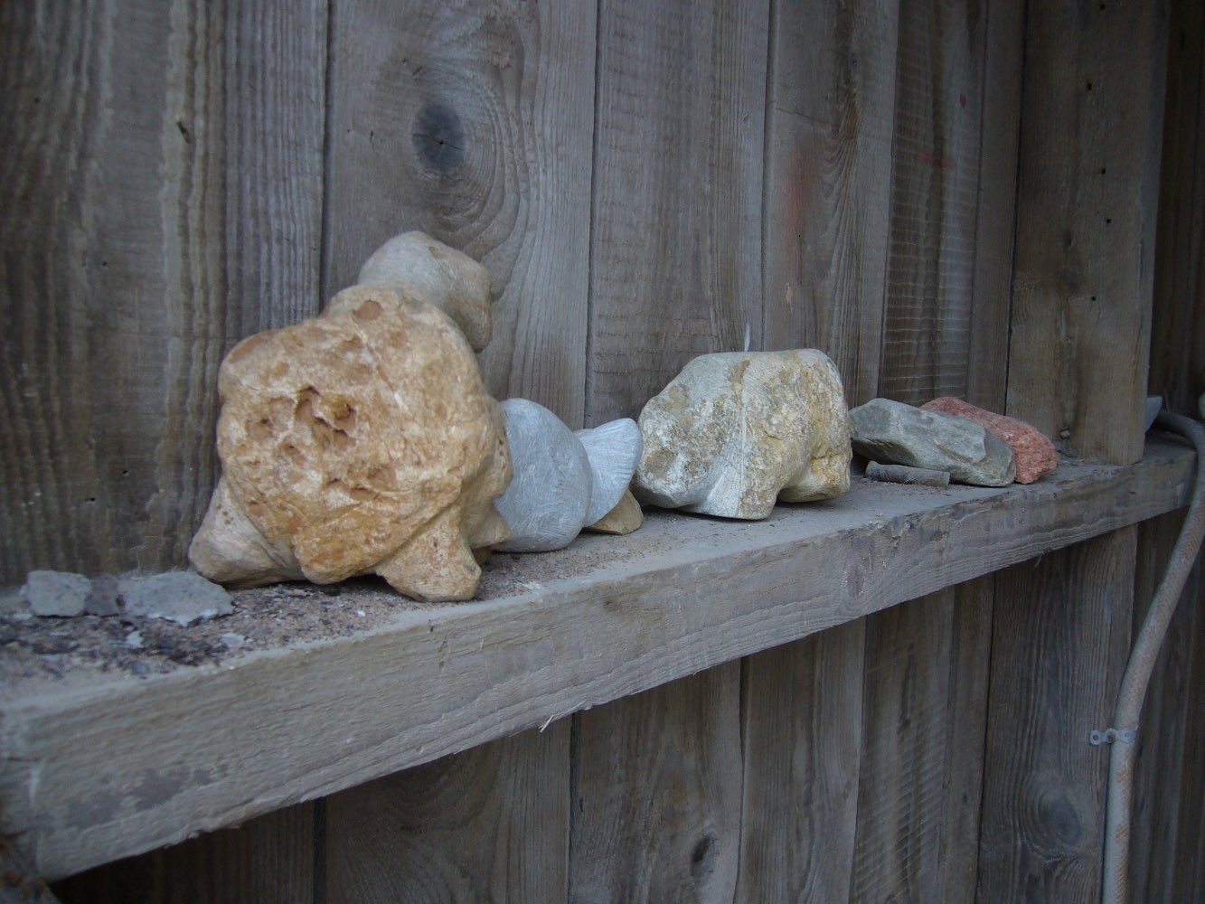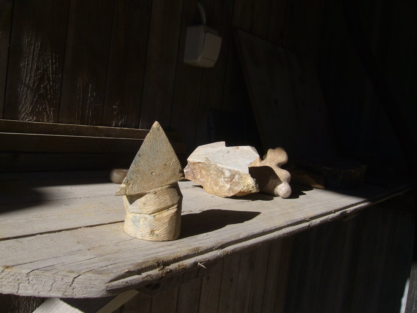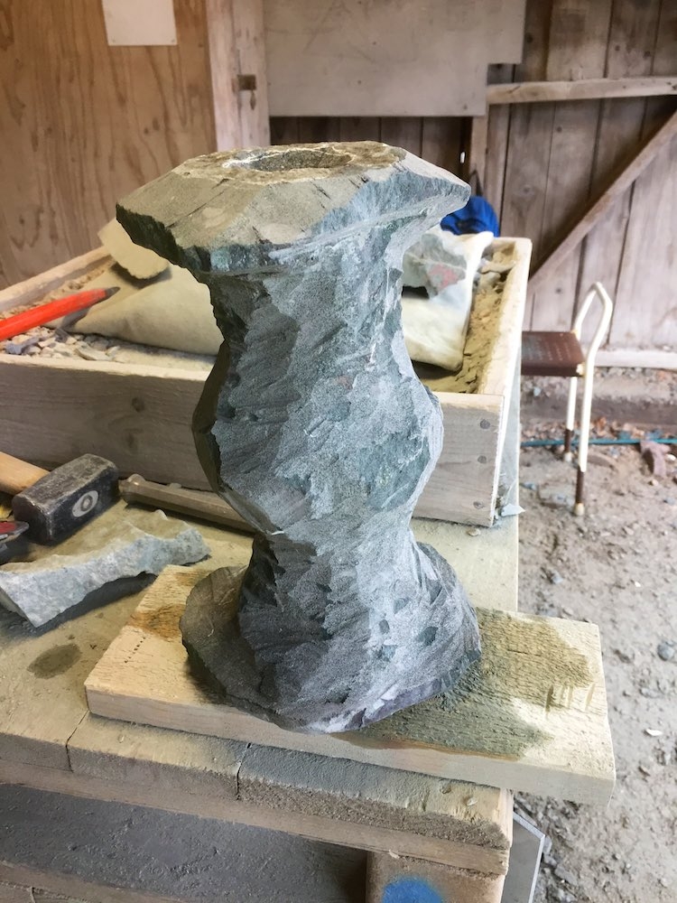 Alabaster eller serpentinsten är också mjuka stensort som vi använder för övningar. Fördel är att det går ganska fort att skapa eller till och med polera en form. Men skulpturer i alabaster eller serpentinsten är mycket ömtåliga och passar inte heller i utomhusmiljö.