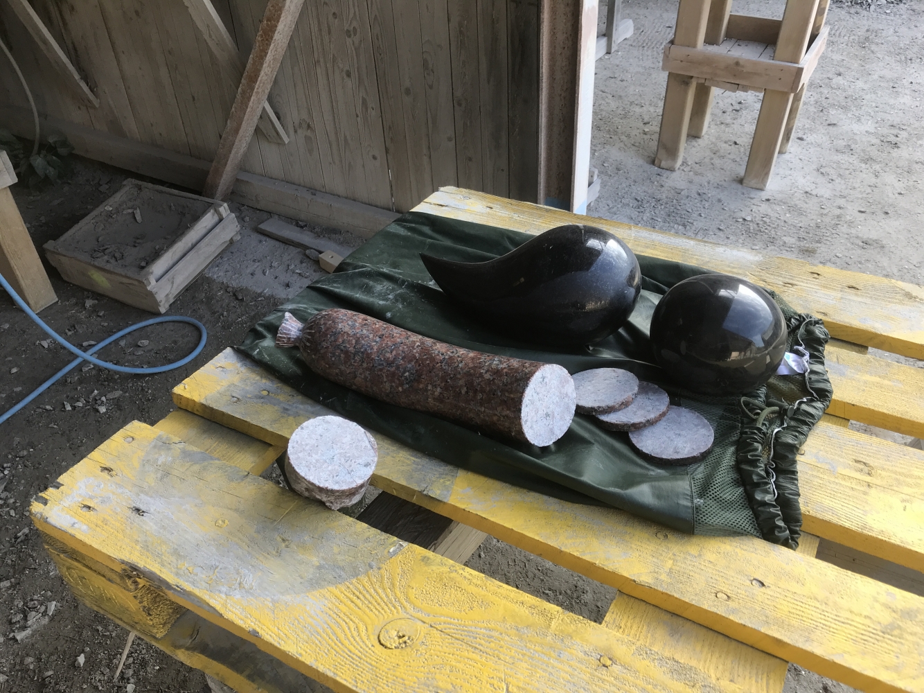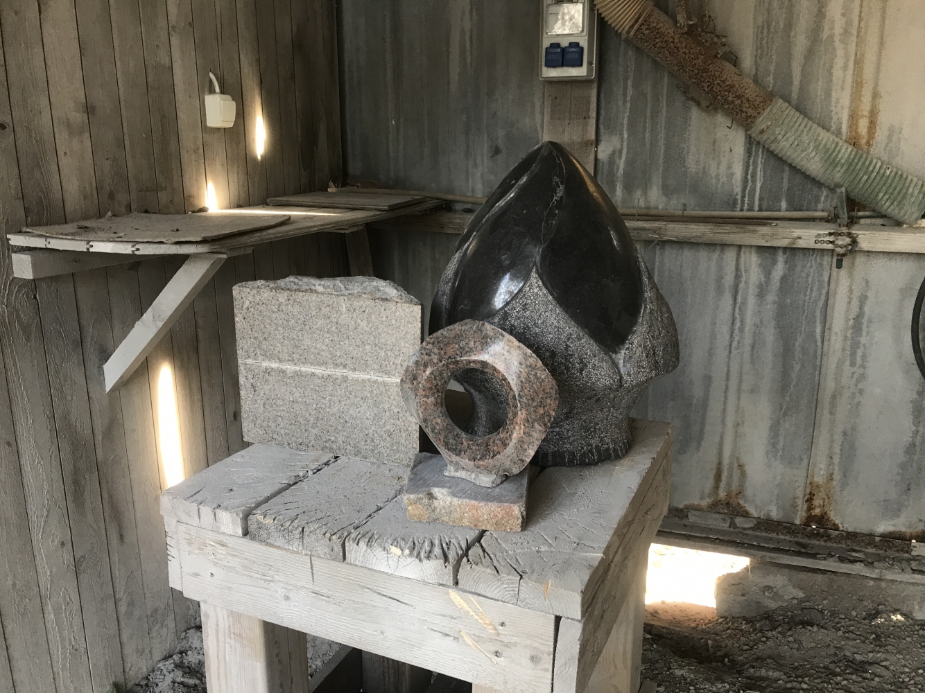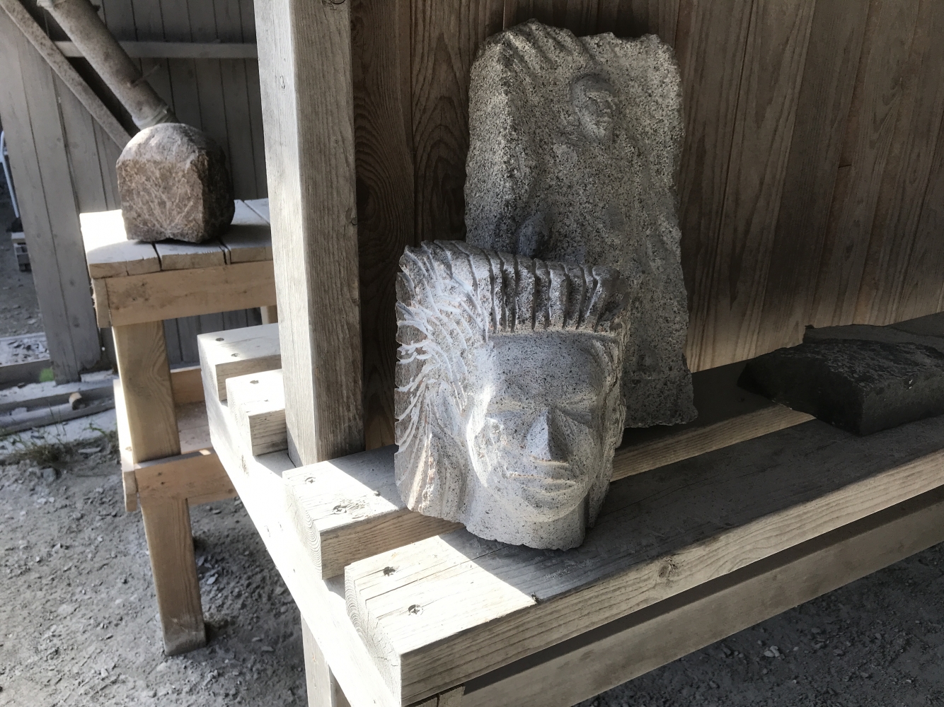 Modeller i mjuk sten, formövningar, färdig skulptur och stenhantverk.