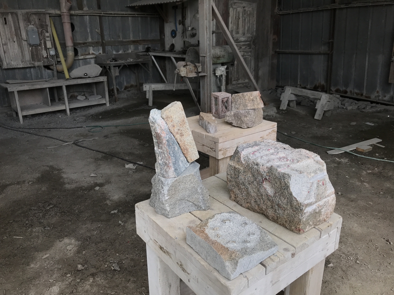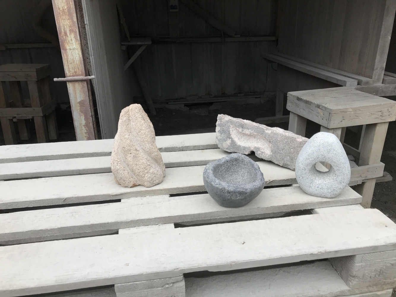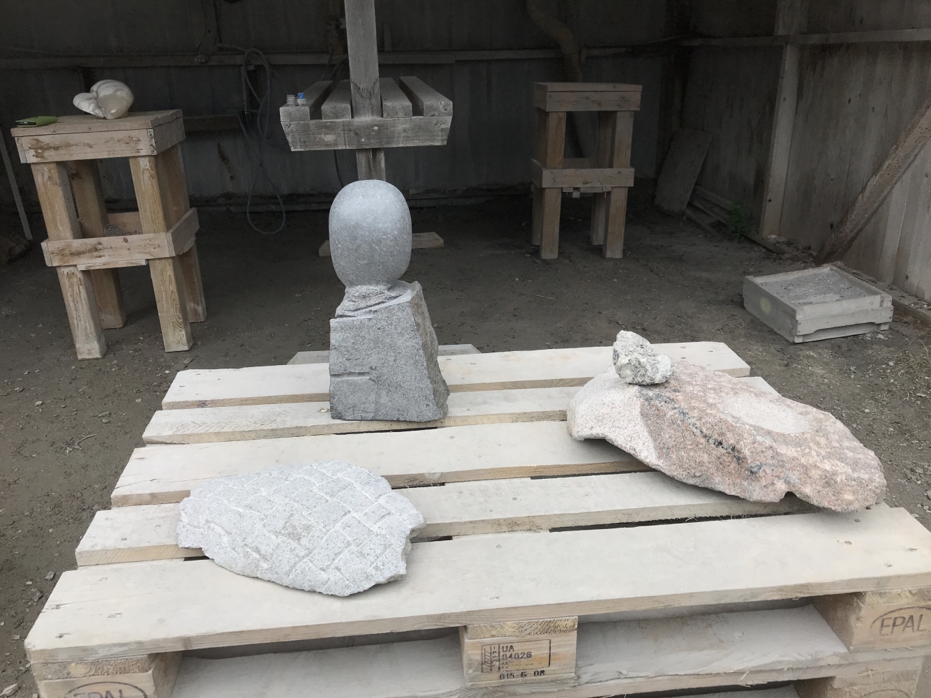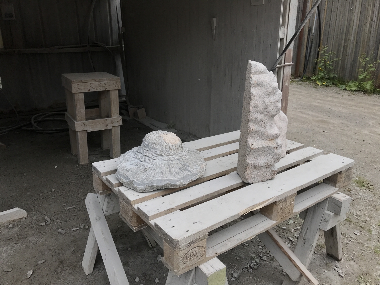 Modeller i mjuk sten, formövningar, färdig skulptur och stenhantverk.