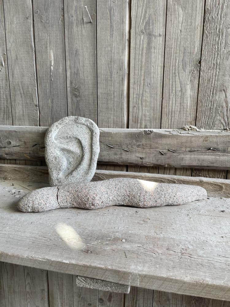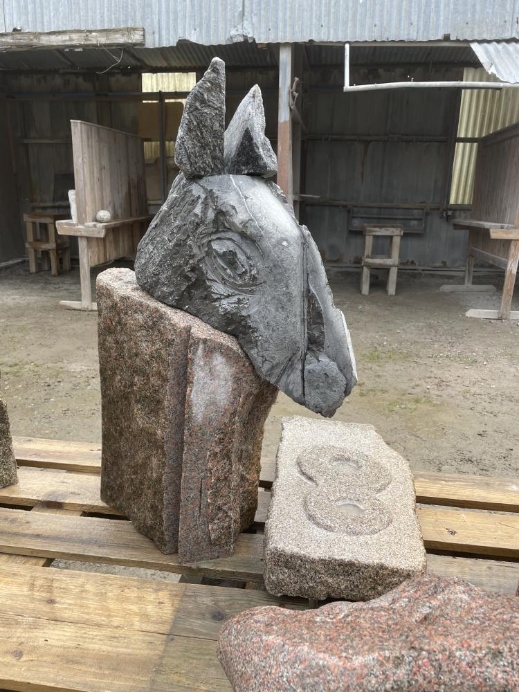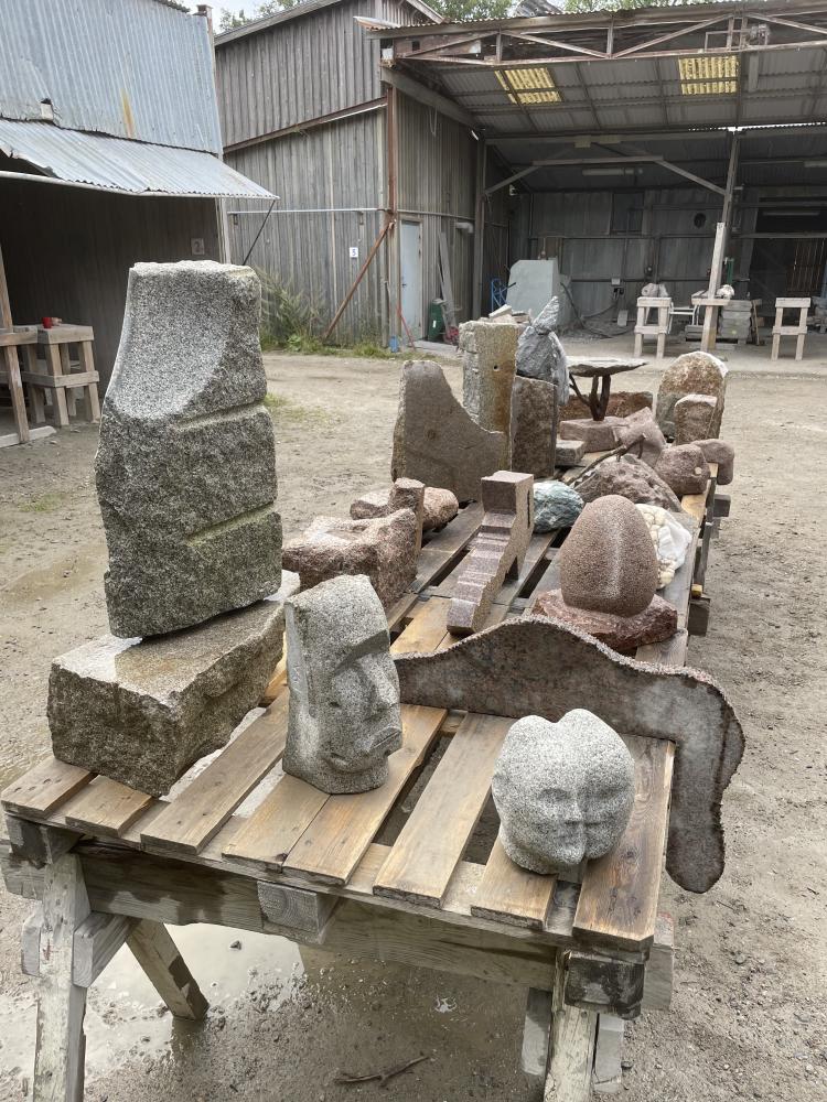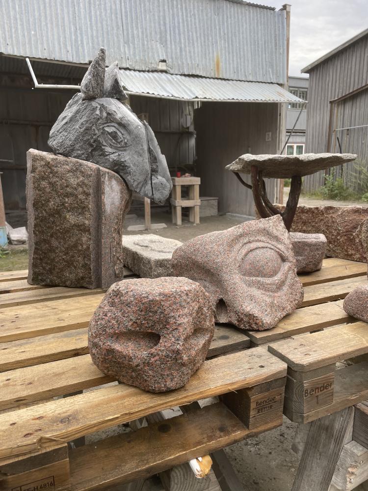 Modeller i mjuk sten, formövningar, färdig skulptur och stenhantverk.