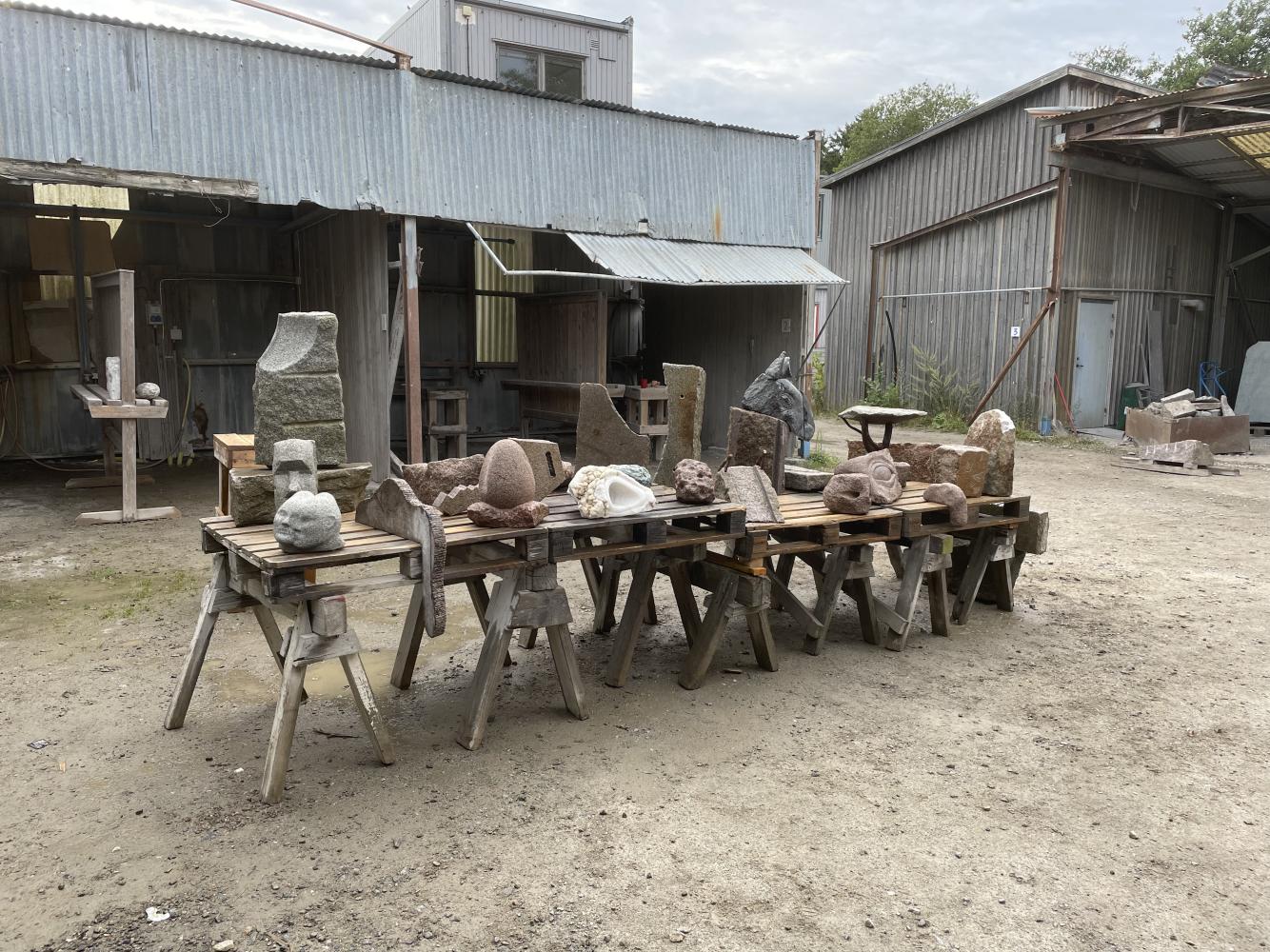 med sten jobbar man helst utomhus, under tak