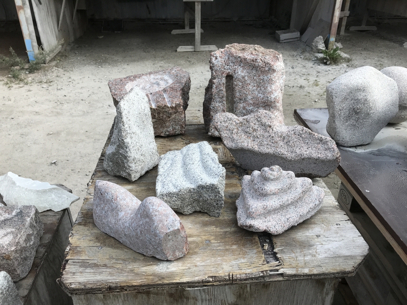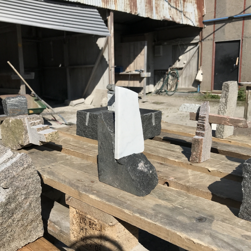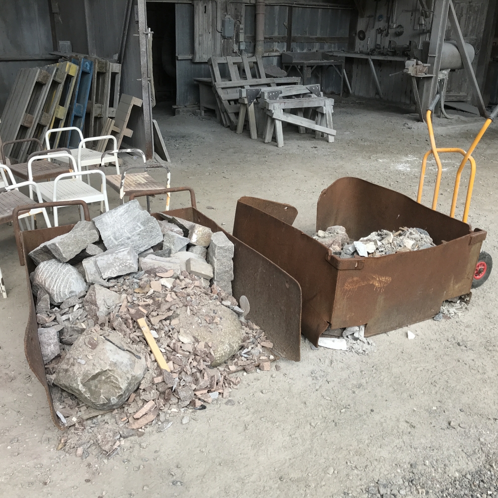 med sten jobbar man helst utomhus, under tak
