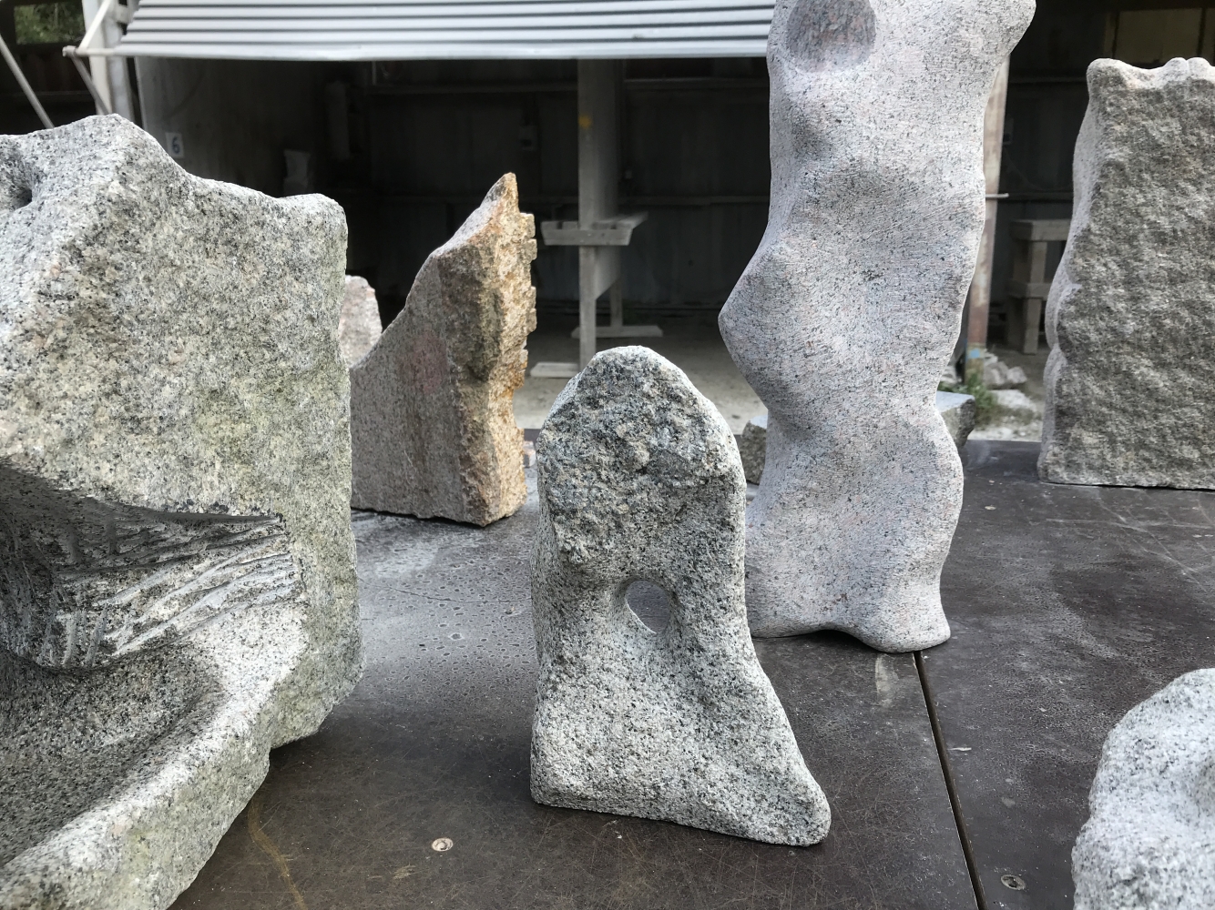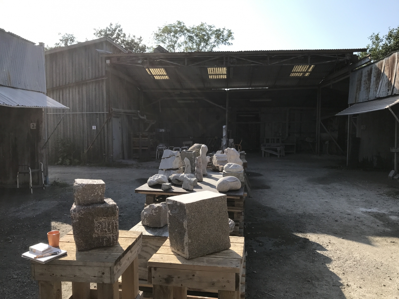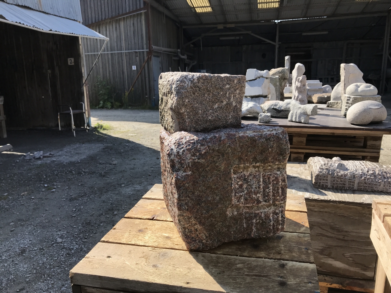 med sten jobbar man helst utomhus, under tak