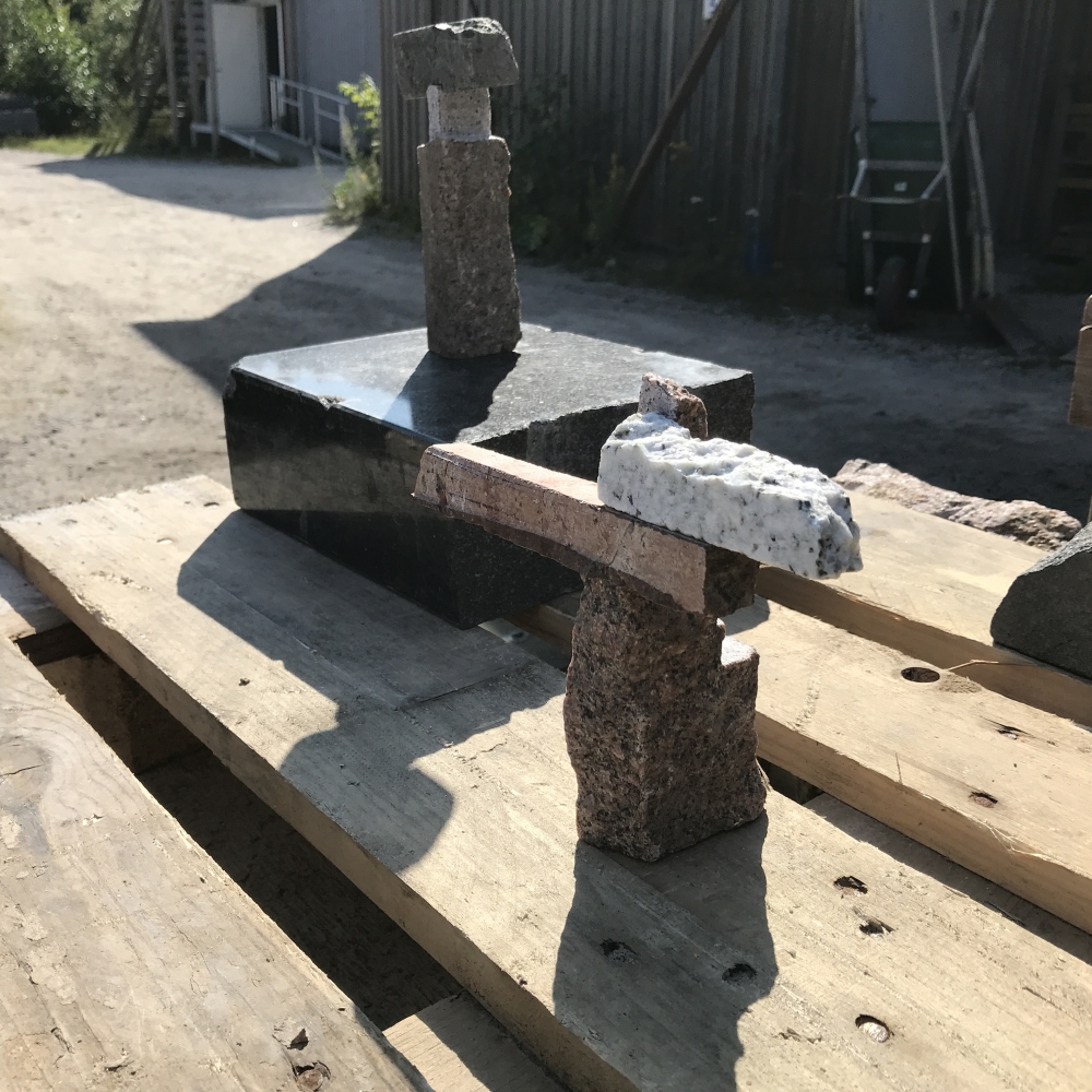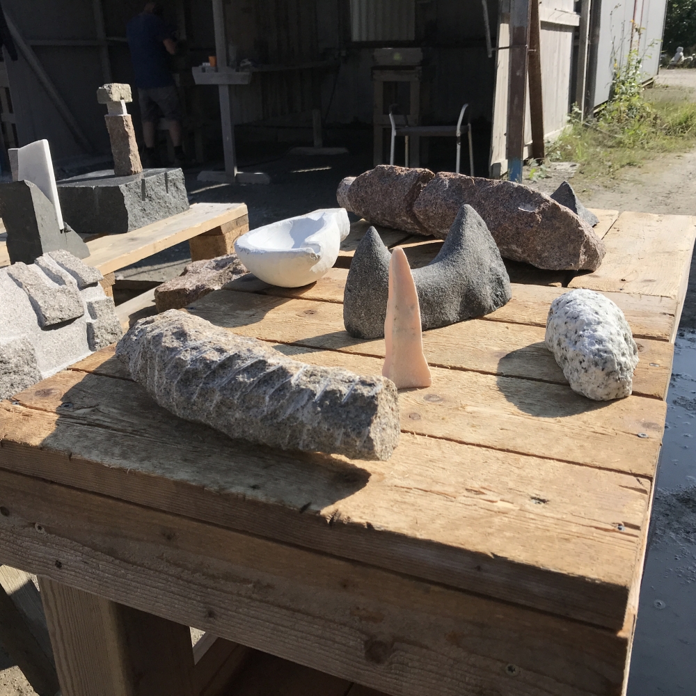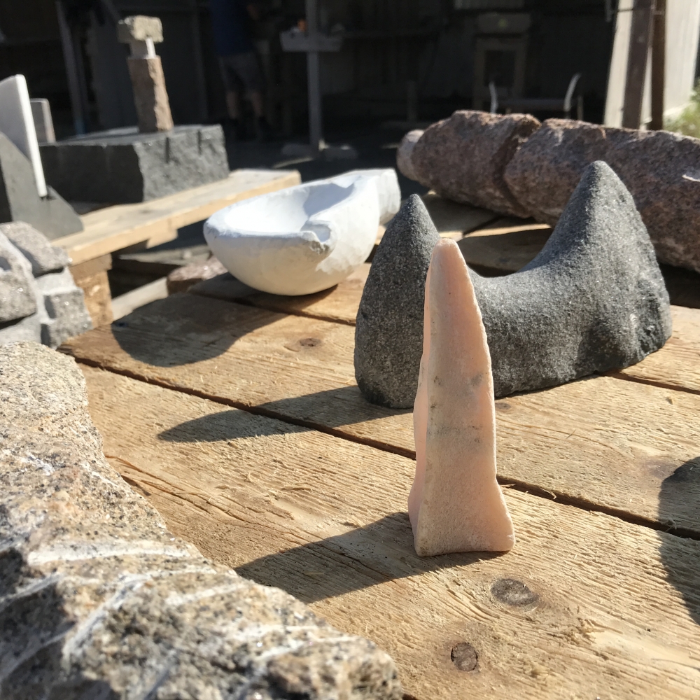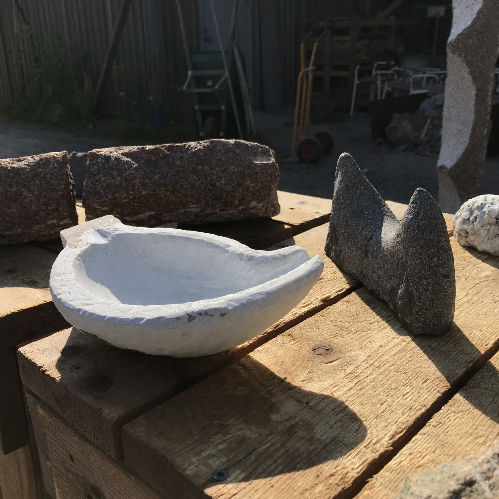 Modeller i mjuk sten, formövningar, färdig skulptur och stenhantverk.