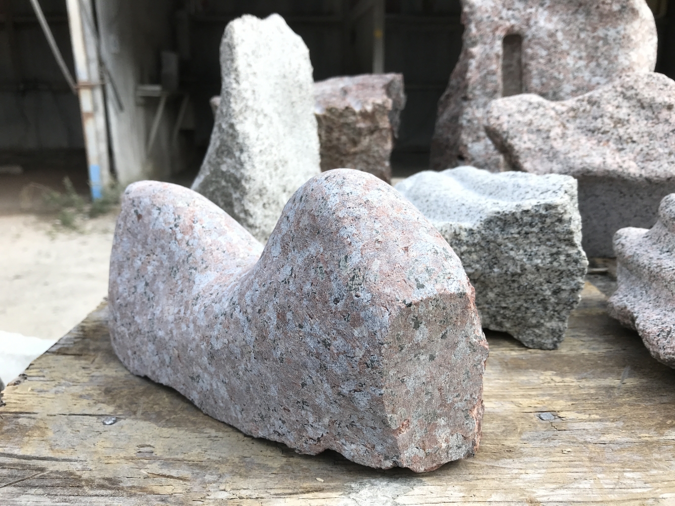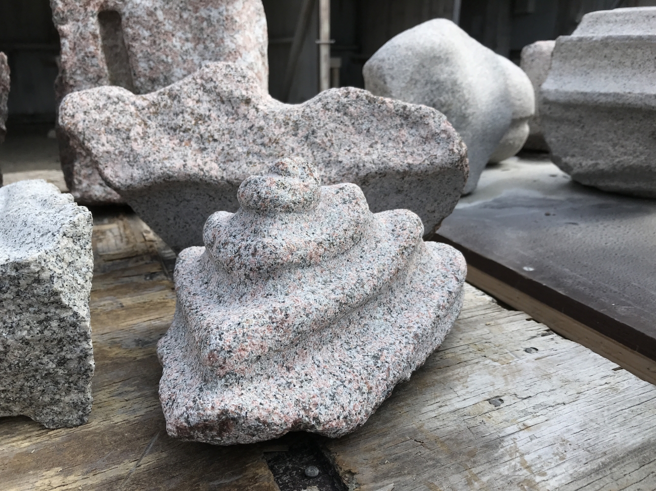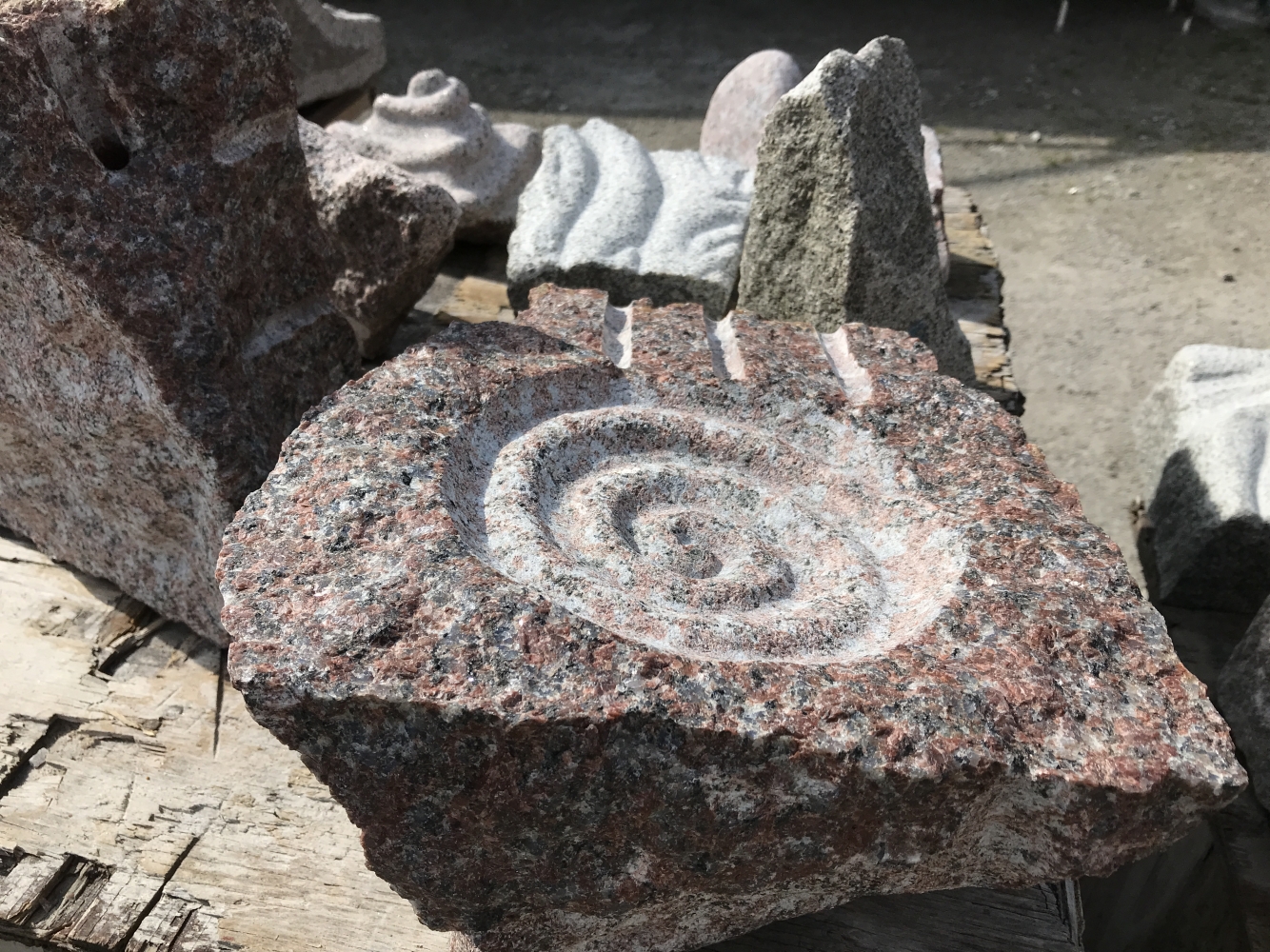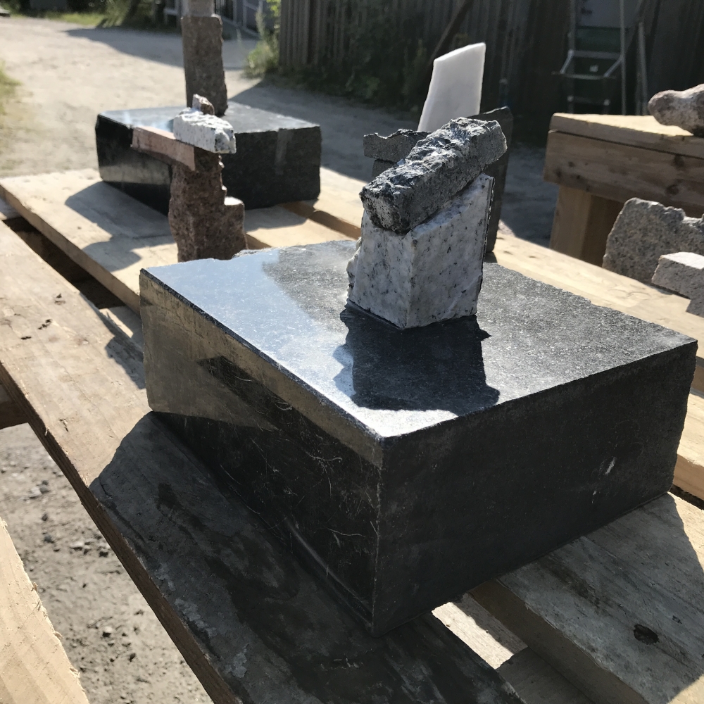 Modeller i mjuk sten, formövningar, färdig skulptur och stenhantverk.